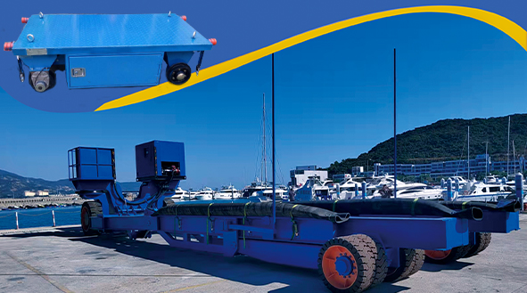 65T重型游艇拖车是由球友会研发团队研发生产的一款重型游艇拖车。拖车可实现自行走、转向、升降、水平调整以及宽度调节功能。通过自身行走举升等功能,托举起游艇在指定的区域内转运,以及在码头区域将游艇从水面拖至岸上,或从岸上将游艇运送至水面。应用场合:应用于游艇俱乐部、旅游基地、游艇制造厂、船厂等。